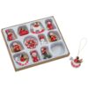12-teiliger Christbaumschmuck aus Holz in einer passenden Verpackung. Die 12 verschiedenen Motive verschönern jeden Christbaum. Die Werbung wird mittels Etikett auf der Verpackung angebracht.