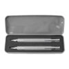 Schreibset ‘Basic-Line’ aus Aluminium/Metall, Set bestehend aus Druckbleistift und Kugelschreiber (schwarze Mine), Accessoires und -Clip aus Metall, Box farbig lackiert