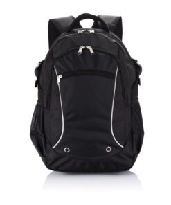 Sportlich urbanes Design macht diesen 900D Laptop-Rucksack zu einem Begleiter für Schule, Büro und Alltag. Mit gepolstertem Laptopfach, einem großen Hauptfach für Bücher oder Kleidung und einer weiteren Vortasche mit Reißverschluss, sowie einem Trolley-Halte-Riemen. Geeignet für Laptops bis zu 15.6”. PVC-frei.