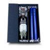 Blau in Blau: Eine blaue ROMINOX® Isolierkanne mit 2 Bechern (0,75 l) & einer Flasche Altbayerischem Glühwein (1 l) im blauen Geschenkkarton