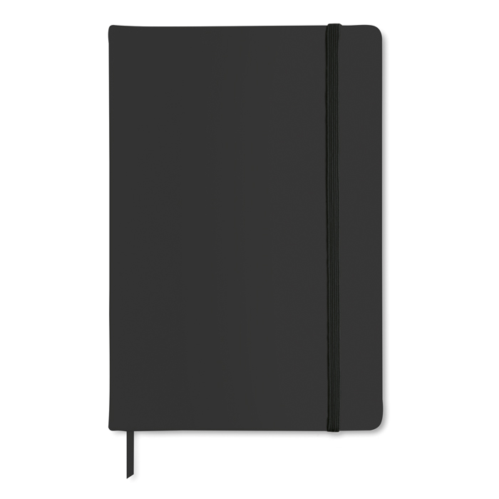 DIN A5 Notizbuch im Soft-PU-Einband mit 96 Blatt Blankopapier und einem elastischem Verschlussband.