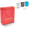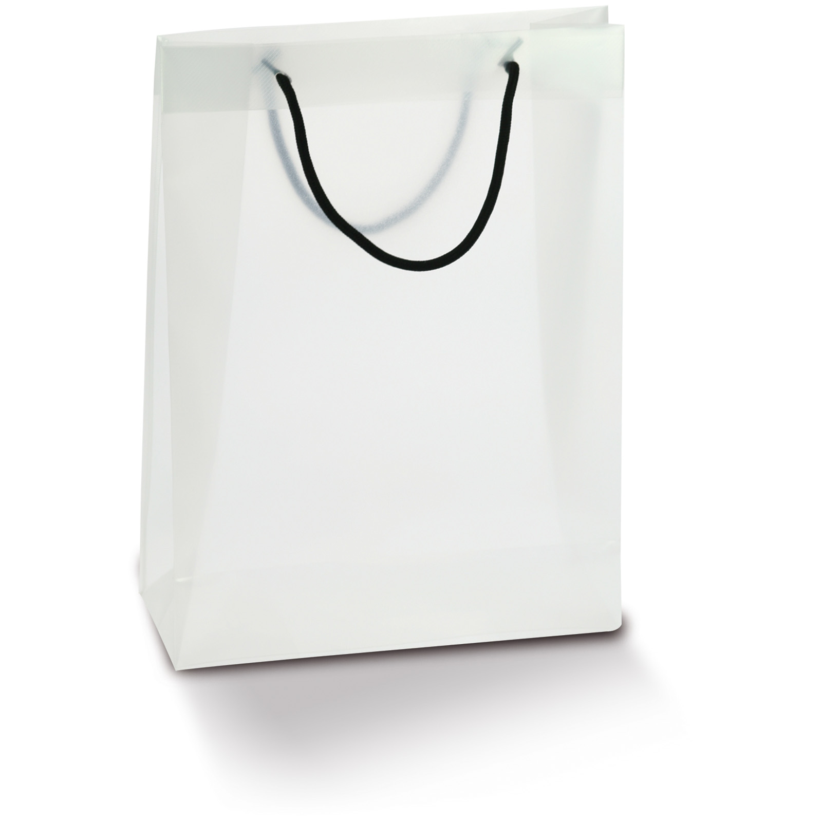 Kunststoff-Tragetasche aus PP. Transluzente Farben. Große Tasche. Maximal einfarbiger Druck pro Seite. Mehrfarbiger Druck und Sondermaße dieser Tasche sind ab einer Bestellmenge von 10.000 Stück möglich (Lieferzeit ca. zwölf Wochen).