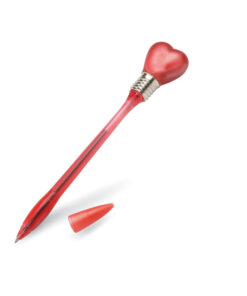 Kugelschreiber mit Glühbirne. Durch leichtes Aufschlagen des Kunststoffballs, bringen Sie ihn zum Leuchten. Inkl. 3 Knopfzellen. Schwarze Tinte.