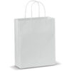 Mittelgroße matte Papiertragetasche mit Griffen, die aus gedrehtem Papier hergestellt sind. Die Tasche hat einen ökologischen Look. Geeignet als Geschenktasche oder als Tasche für Mitbringsel. FSC-zertifiziert.