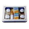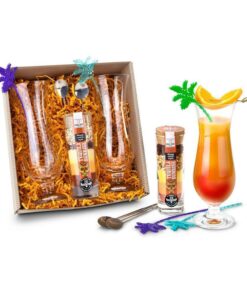 Die ganze Nordsee in einem Set: 20 g Sanddorn-Sahne Tee und 20 g Schietwettertee in Sanddorn-Fotodosen, 40 ml Sanddornlikör, 50 g Rapshonig, 50 g Sanddornkonfitüre, 125 g Würfelkandis und 125 g Kieselsteine – natürlich zum Essen. Im Geschenkkarton mit Sichtfenster.