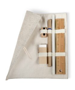 Notizbuch. 70 Blatt recyceltes Blankopapier. Biologisch abbaubarer Kugelschreiber mit Schaft aus Karton. Blaue Tinte.