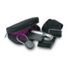 Reise Set mit aufblasbarem Nackenkissen mit samtiger Oberfläche, Schlafmaske und Ohrstöpseln. Alles verpackt in einer Tasche.