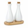 Mediterrane Essig und Öl Spender, puristisch und elegant, moderne Materialkombination aus Keramik und Bambus, inkl. Korken und Bambustablett, auch als dekorative Blumenvase verwendbar (Keramik, Bambus, Kork)