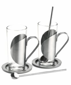 Puristisches und lineares Design, fest verschließender Schraubdeckel mit Dichtungsring, ideal für den Schreibtisch oder den Konferenzraum, temperatur- und spülmaschinenbeständiges Glas, 500 ml (Borosilikatglas, Edelstahl – seidenmatt gebürstet)
