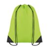 Schwarzer Rucksack mit farbigen Applikationen. Schnürung auf der Vorderseite. Netztaschen an den Seiten. 600D Polyester.