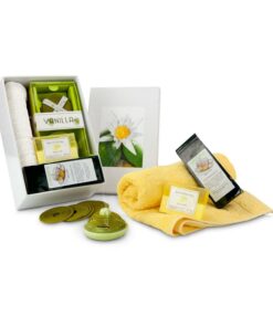 Diese Präsent lädt zum Entspannen ein. Das kleine Büchlein und die zwei braun-goldenen Teelichthalter verströmen schon beim Auspacken Ruhe.