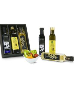 Eine frische Kombination, die keine Salat-Wünsche offen lässt. Dieses Set enthält eine Flasche italienischen Aceto Balsamico, eine Flasche spanisches kalt gepresstes Natives Olivenöl Extra (je 100 ml), dazu je ein Gläschen Pfefferkörner (20 g) und grobes Meersalz (40 g) und als Highlight passend dazu zwei kleine ROMINOX® Edelstahl Mühlen mit Keramikmahlwerk. Verpackt in grünem, frischem Sizzle in einem schwarzen Sichtfensterkarton!