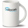 Hochwertiger weißer Porzellanbecher – Made in Europe. Konisches Modell mit großem Henkel.