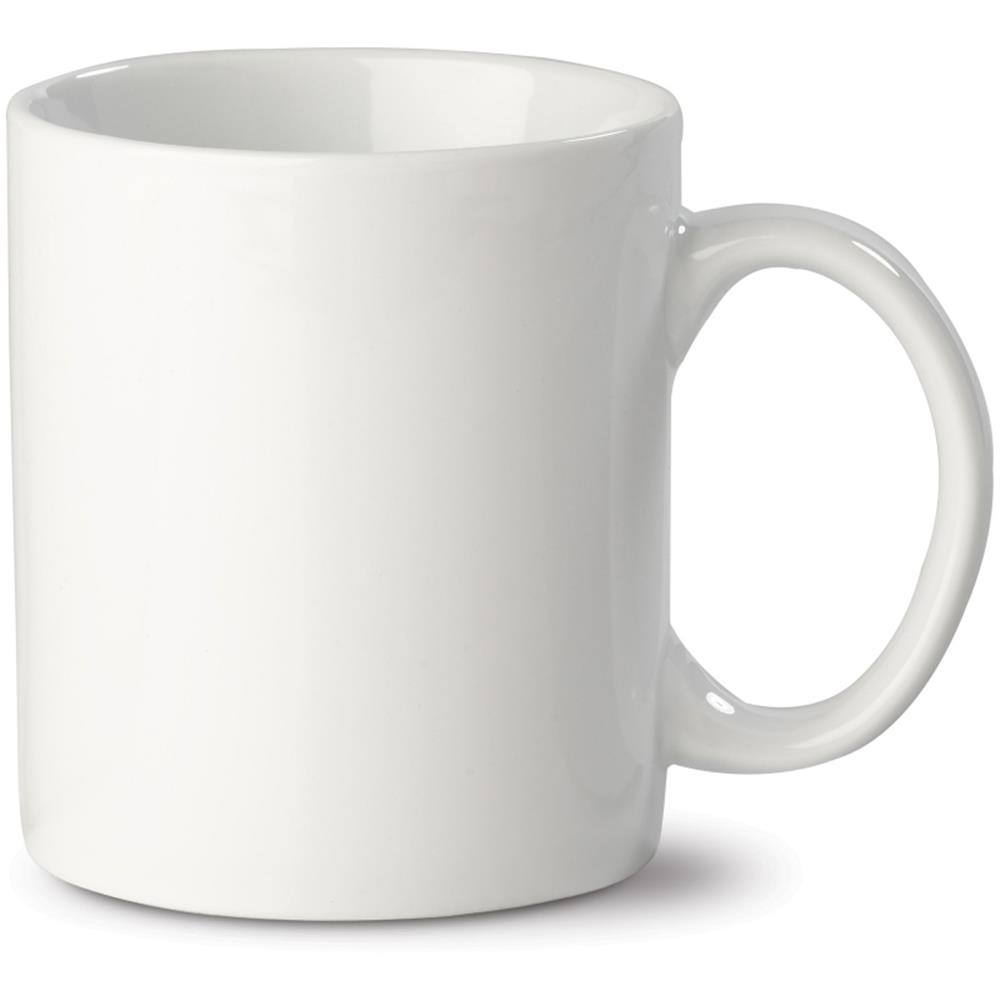 Gerader Porzellanbecher mit einer großen Druckfläche. Egal ob Rundumdruck oder ein Druck auf beiden Seiten, der Preis bleibt gleich.