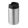 Doppelwandiger Trinkbecher aus Edelstahl. Innenbeschichtung und Henkel aus PP. Füllmenge: 340 ml.