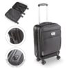 Dieser Trolley in Kabinengröße hat ein Hauptfach mit grauem Futter und ist mit einem Doppelreißverschluss ausgestattet. Der Koffer hat vier bewegliche Rollen. Mit Metallplatte zum Bedrucken. Jeweils in einer Schachtel verpackt.