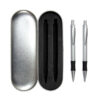 Schreibset ‘LaPalma’ aus Metall, Set bestehend aus Füllfederhalter und Dreh-Kugelschreiber, Griffzone in Leder-Optik, Geschenk-Etui, schwarze Mine