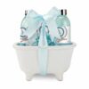 150 ml Duschgel, 150 ml Schaumbad, 200 g Badesalz, Massagebürste aus Kunststoff in Keramik-Badewanne, Duft: Ocean