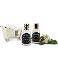 Eine Wanne voller Entspannung bietet dieses Set. 150 ml Duschgel, 150 ml Schaumbad, 200 g Badesalz sowie eine Massagebürste aus Kunststoff sind stilvoll verpackt in einer weißen Keramik-Badewanne. Duft Ocean.