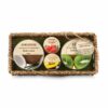 Das Fruchtkörbchen ist gefüllt mit 2 x 60 ml Bodylotion und 2 x 10 ml Lipbalm. Von Kiwi und Kokosnuss über Erdbeere und Passionsfrucht ist für jeden etwas dabei! Der Bastkorb verleiht dem Set einen natürlichen Touch.
