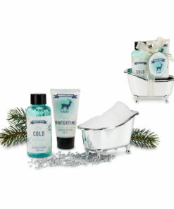 45 ml Bodylotion, Schwamm, 35 g Seife, 2 Zehentrenner und 2 Holzstäbchen im kleinen Metallkäfig mit aufklappbarem Dach