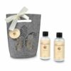 100 ml Duschgel, 100 ml Bodylotion in einem Filztäschchen, Duft: Mandelmilch