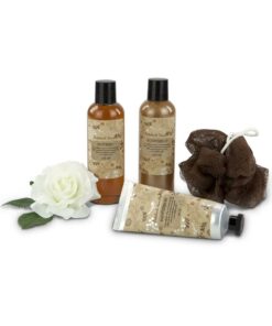 460 ml Shampoo & Schaumbad, 90 ml Bodylotion & Körperpeeling, 200 g Badesalz, 6 x 20 g Sprudelbadkugel, Nagelbürste, Kerze, in Weidenkorb